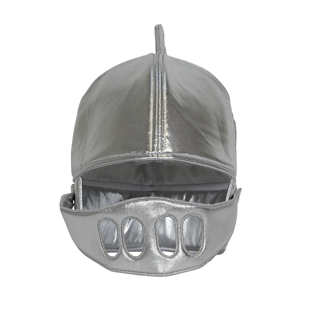 Hjelmen fra by ASTRUP® er syet i kraftigt foret sølvstof med et visir, der kan vippes op og ned.