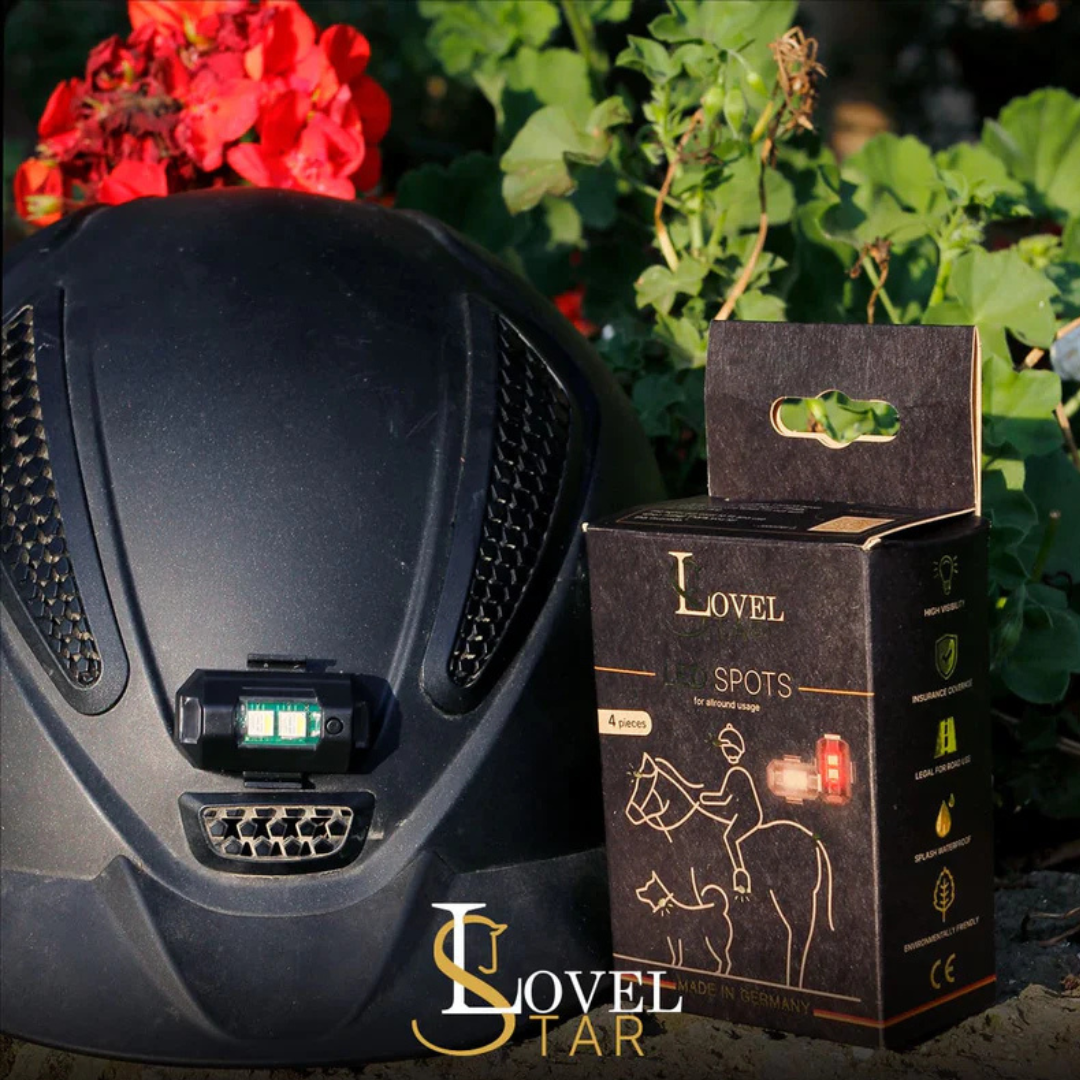 Pakke med 4 stk. Med LED-spots fra LovelStar er du altid synlig! Uanset om det er til hest eller på gåtur med hunden – de kan påsættes overalt.
