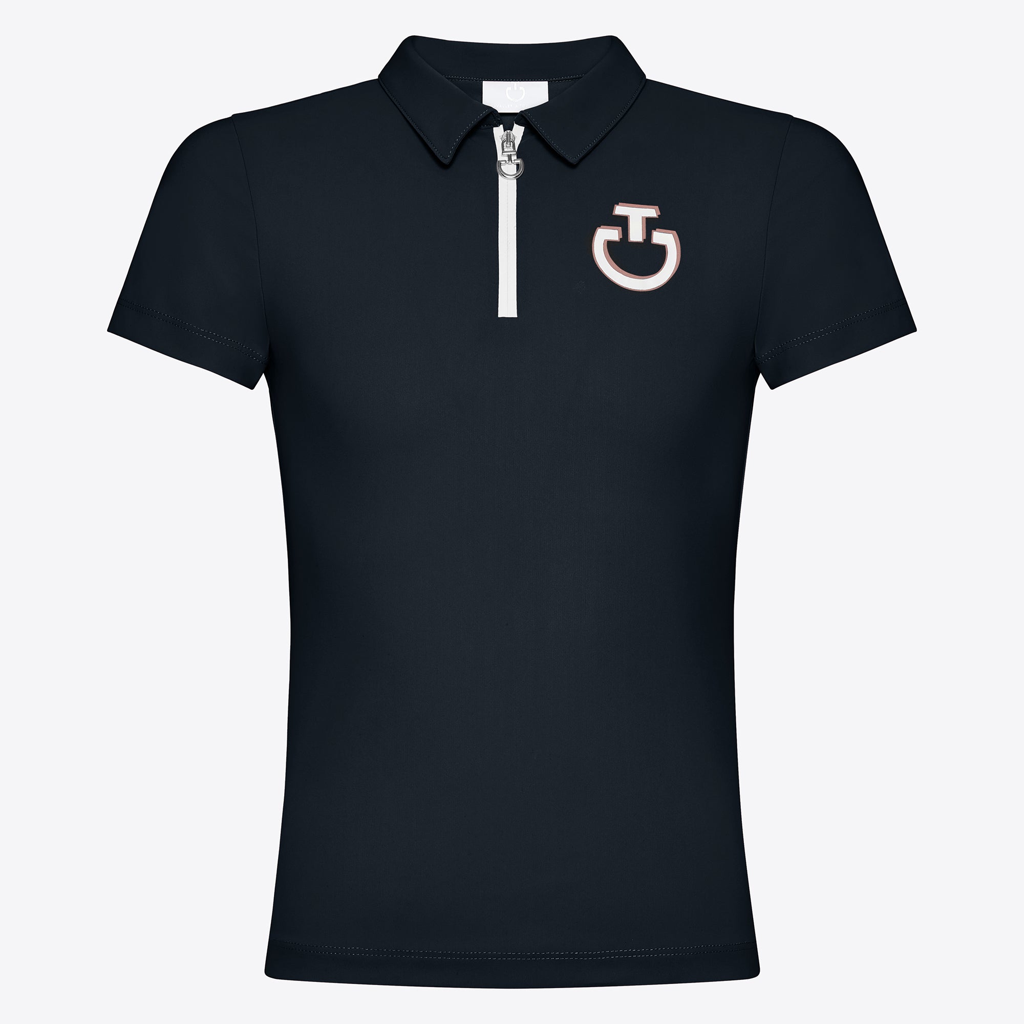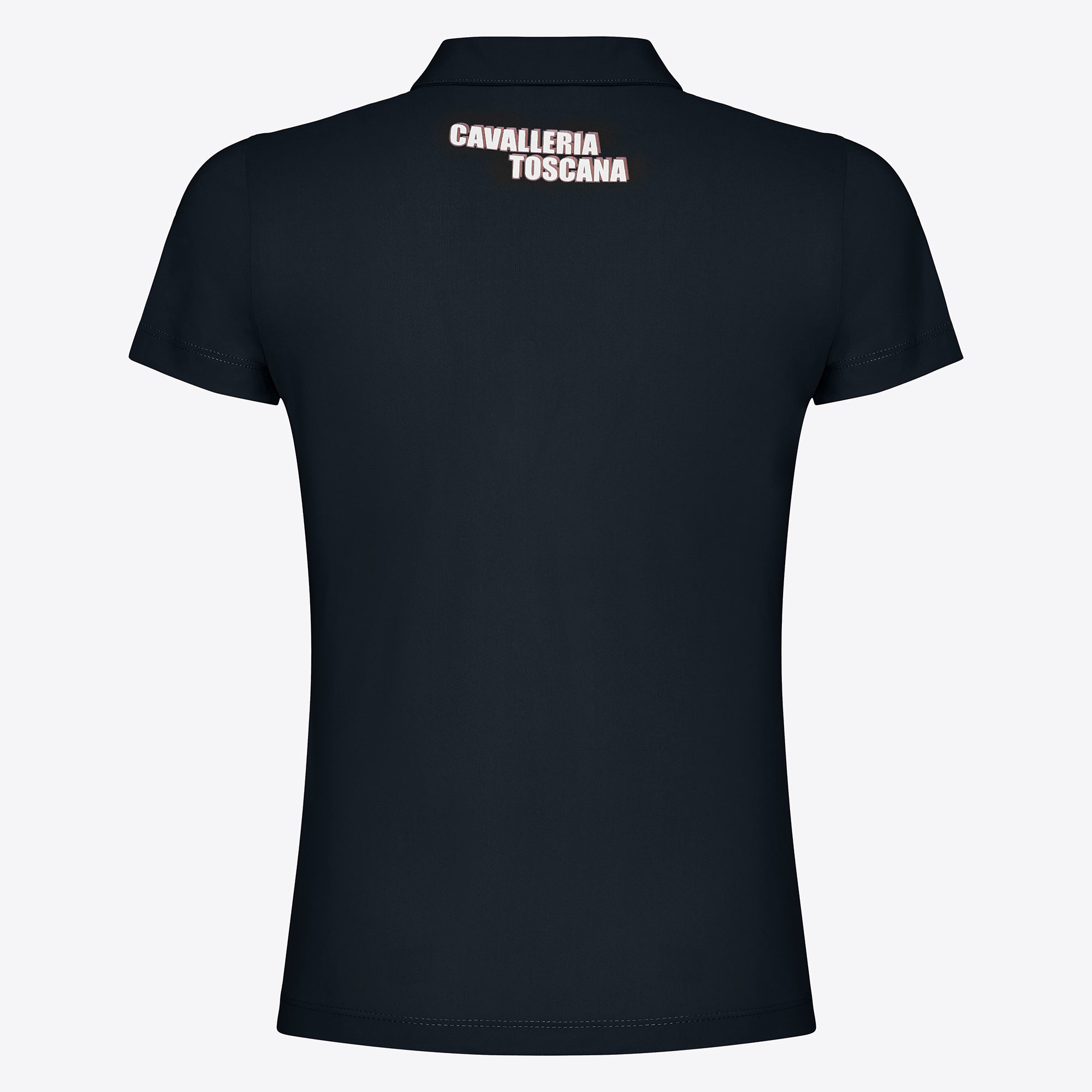 Cavalleria Toscana tekniske træningspolo er designet til at tilbyde optimal komfort og ydeevne under rideaktiviteter. Denne polo er lavet af teknisk jerseystof af høj kvalitet og sikrer holdbarhed og høj åndbarhed. T-shirten har en halvlynlås. Cavalleria Toscana silikonelogoerne i relief er placeret på brystet og ryggen i hvid og lyserød, hvilket giver et karakteristisk og raffineret look. Denne polo kombinerer funktionalitet og stil, hvilket gør den til en vigtig del i enhver ung rytters garderobe.