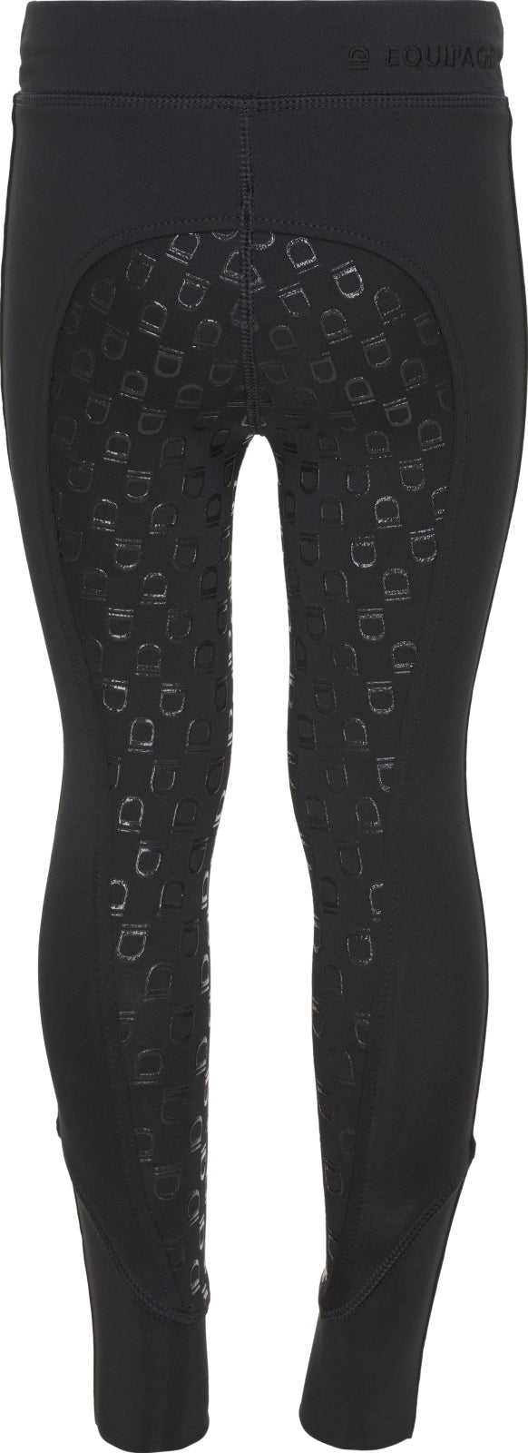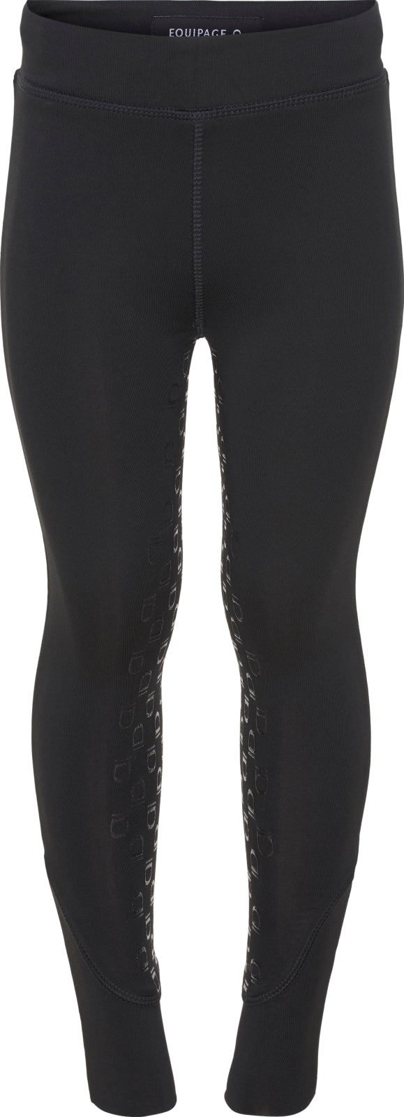 Ridetights med høj talje til børn. Komfortabel bred elastisk linning med indvendig elastik og knapjustering for perfekt pasform. Bukserne er med fullgrip. Lavet i blødt materiale og lette for børn selv at tage på.