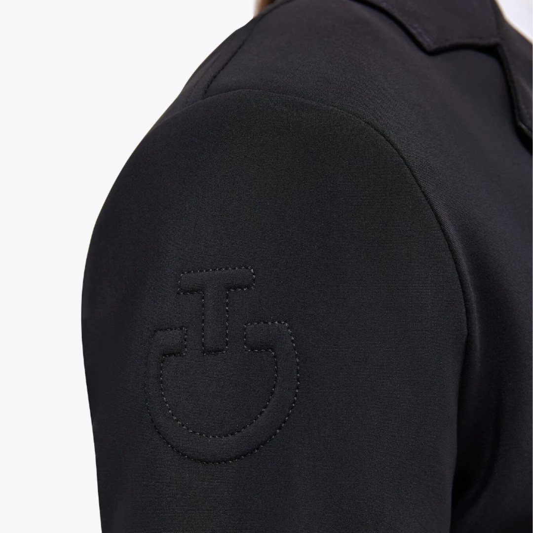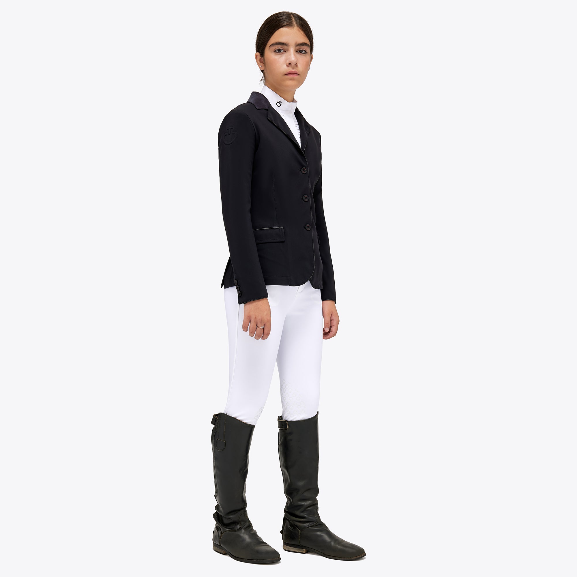 Klassisk ridejakke fra Cavalleria Toscana til piger er lavet af teknisk 4-vejs stretch jersey, som er både elegant og åndbart. Stoffet har antibakterielle egenskaber og er vandafvisende. Jakken har en alcantara-krave og kontrastfarvede piping i kanterne, to frontlommer og knapper.