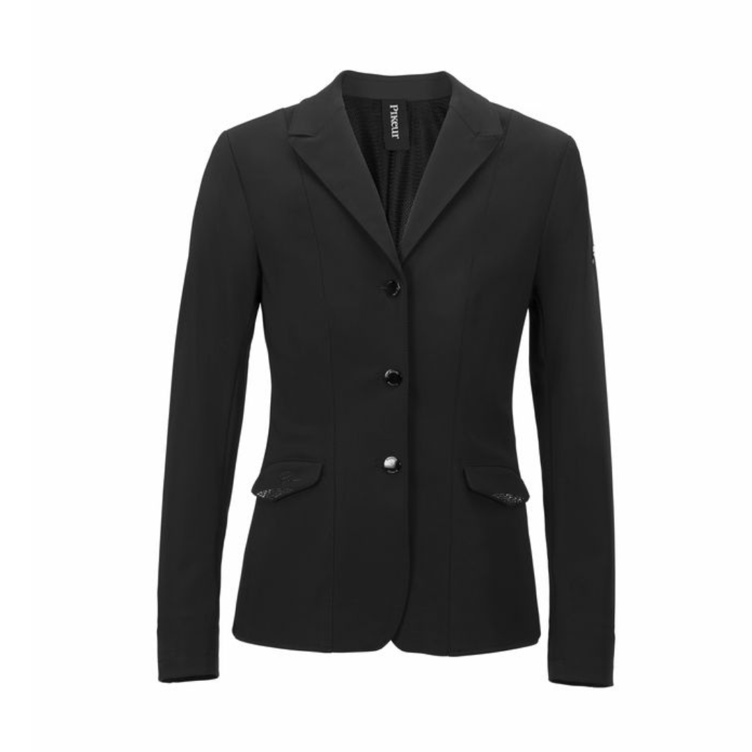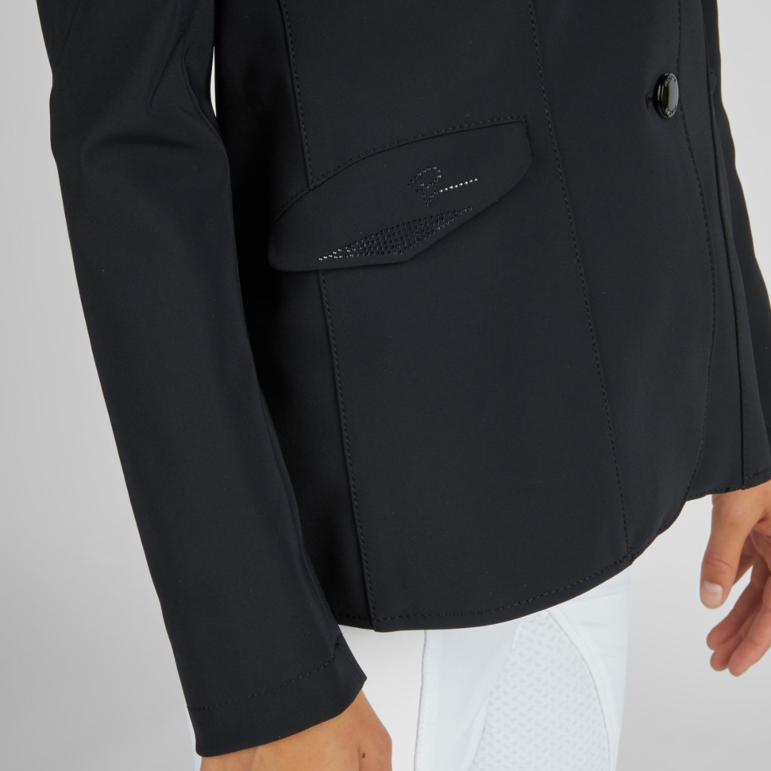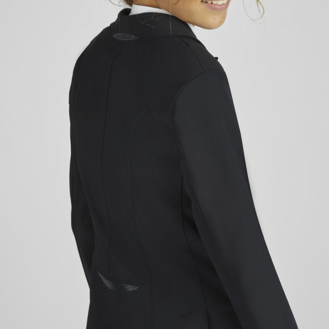 Flot stævnejakke fra Pikeur til børn med diskrete rhinsten detaljer på klaplommer, kraveindsats og i taljeområdet. Den er lavet i tech-jersey matriale og med 4-vejsstretch til optimal comfort. Den er åndbar og hurtigtørrende.