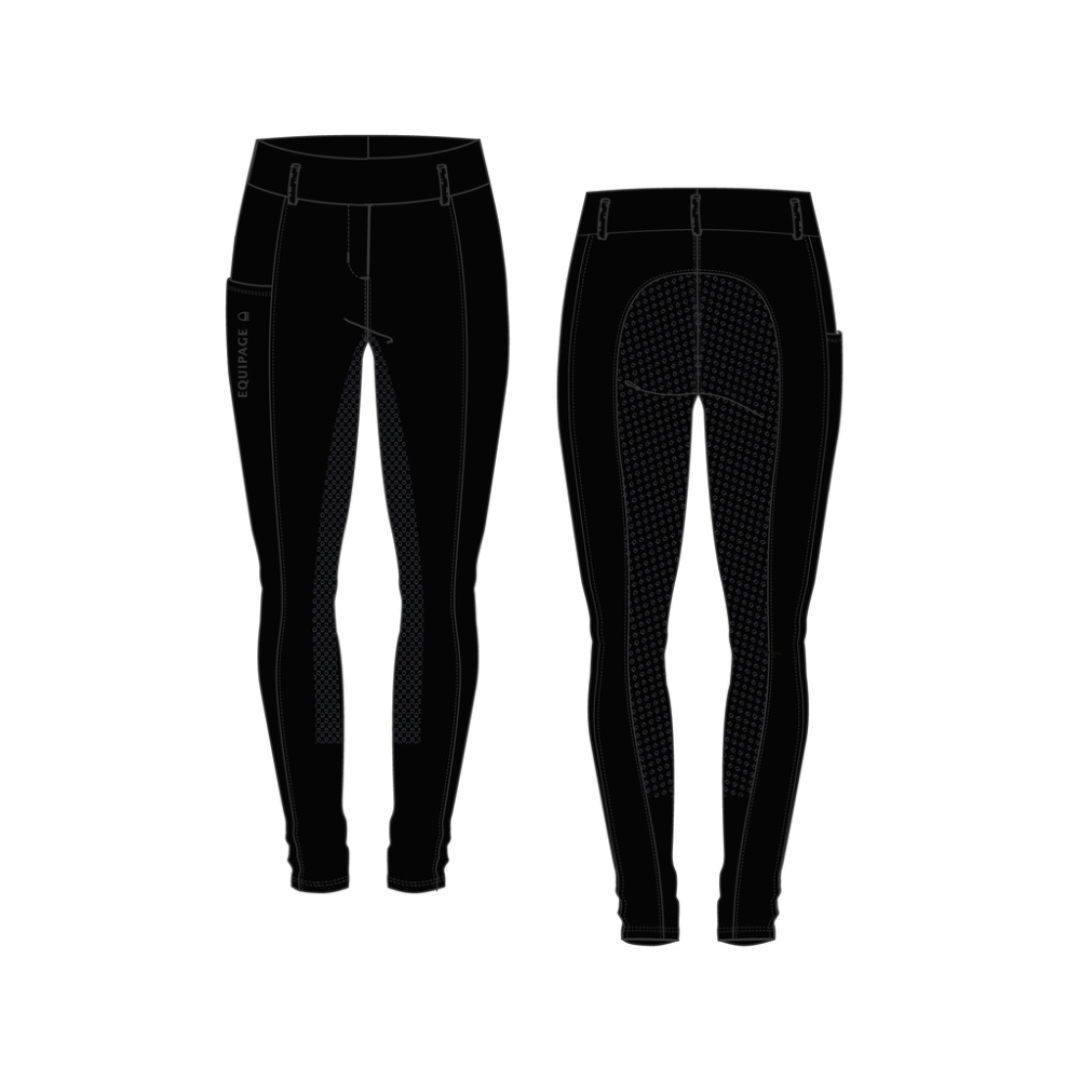 Vinter ridetights med fullgrip fra Equipage med børstet inderside. Lavet i blødt materiale og lette for børn selv at tage på. Med mobillomme på højre side