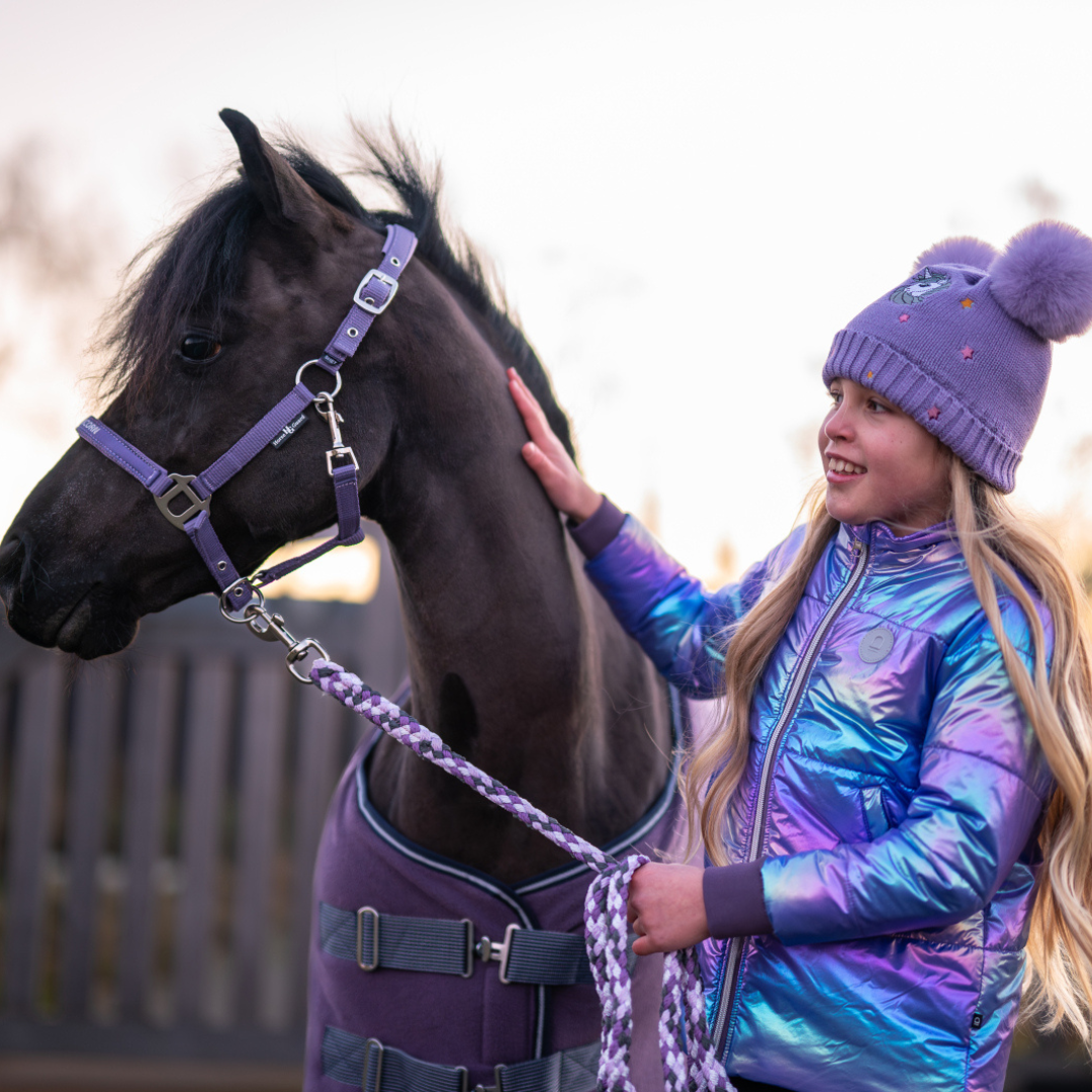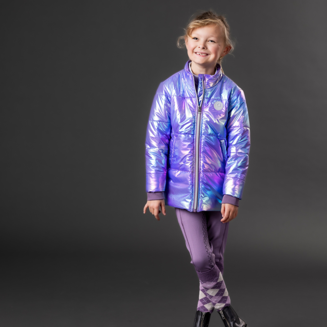 Flot vatteret ridejakke til børn fra Equipage med hologram regnbue effekt i et shiny materiale