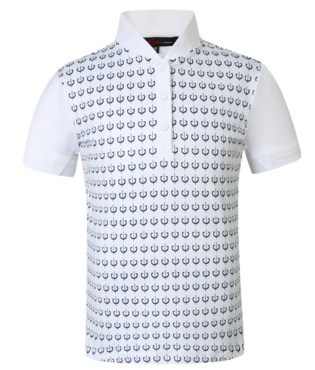 Competition shirt fra Covalliero er en flot stævne t-shirt med logo print til børn. Med krave og knaplukning. Med mesh under armene, som gør blusen ekstra åndbar